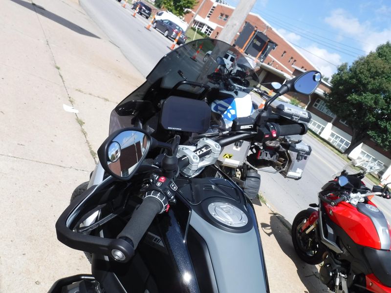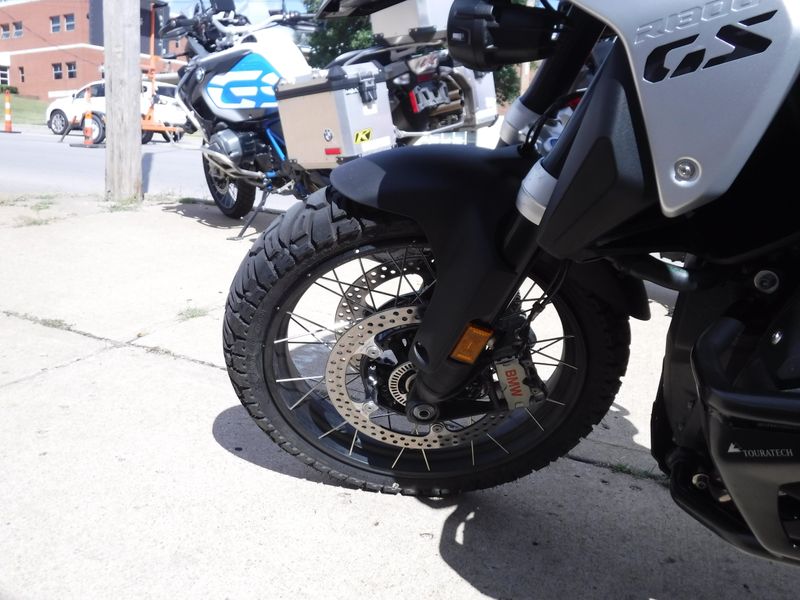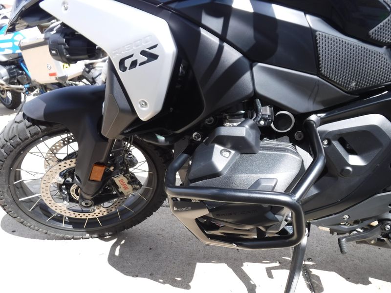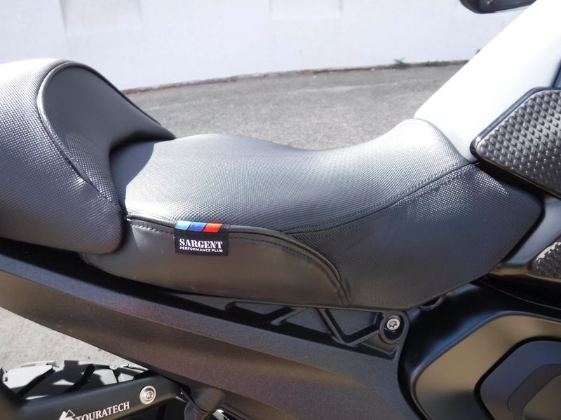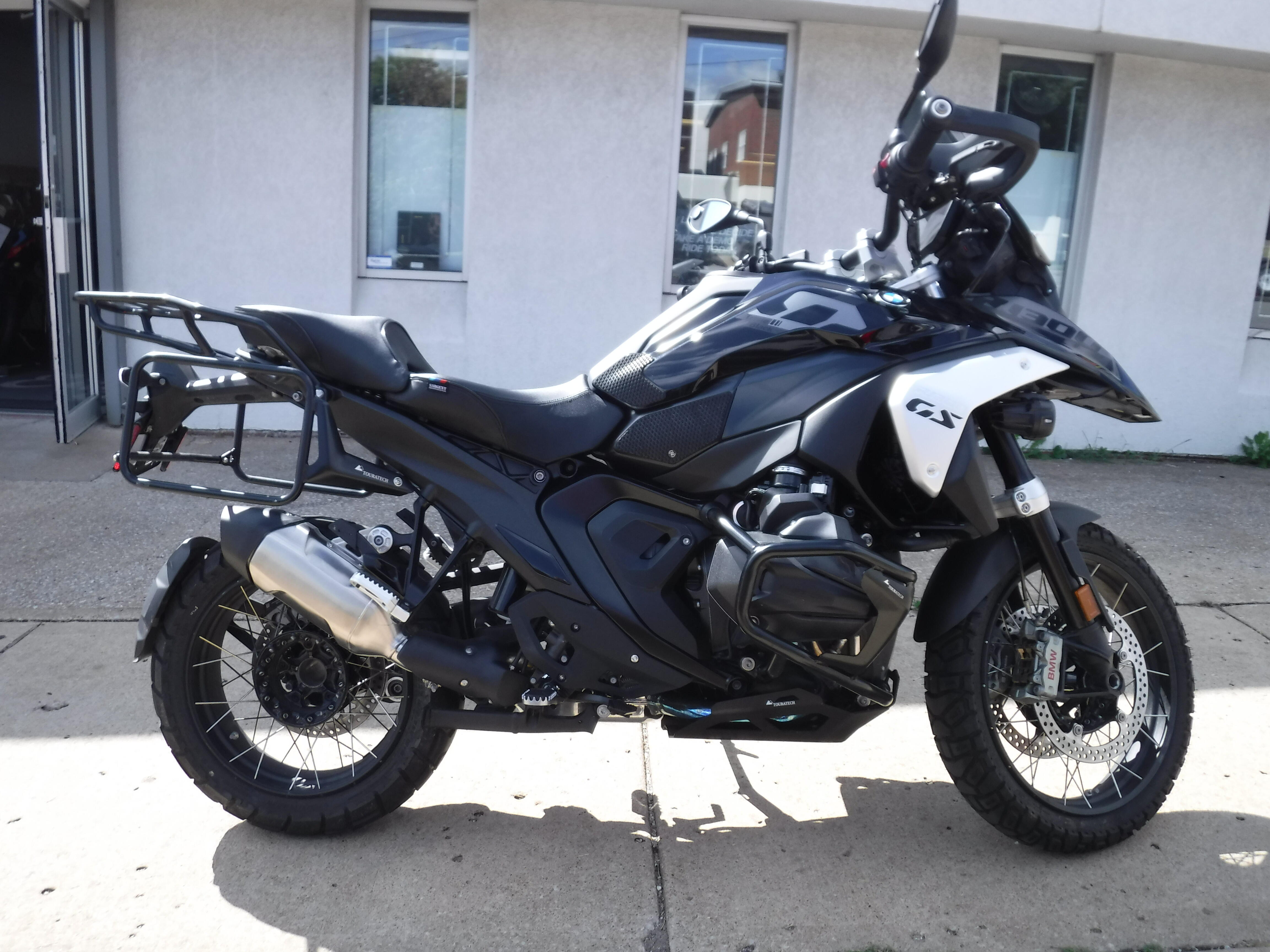 Check out this R1300 GS loaded with Touratech engine guards, a Wunderlich tall windscreen, Wunderlich side protectors, blind spot mirrors, dash screen protector, BMW NAV cradle (NAV not included), heated front and rear Sargent seats and Touratech racks (bags not included).
