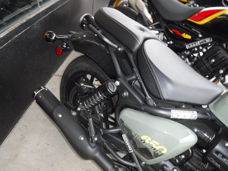 The Shotgun 650 is ergonomically optimised, with mid-set foot pegs, a low 795mm seat height and handlebars that are intuitively placed to work with the seat and footpeg position. Its tuned Showa suspension, 1465mm wheelbase and low centre of gravity come together to make riding in traffic, on highways and down twisty back roads equally fun, without compromising on comfort. Wide 18” front and 17” rear tyres, combined with 320mm and 300mm disc brakes, ensure a steady grip and ample control at all speeds, whether you’re riding solo or with extra weight.