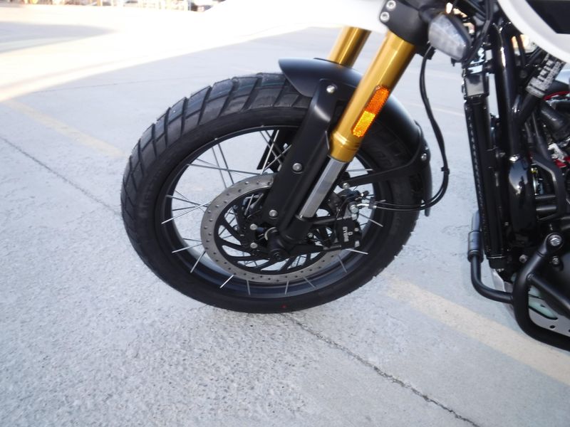 • Spoked Wheels (New): Side-laced spoked wheels with lightweight Excel aluminum rims deliver Scrambler attitude with modern tubeless practicality, combining timeless style and rugged capability.