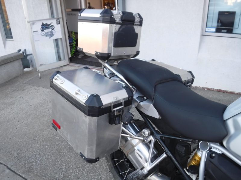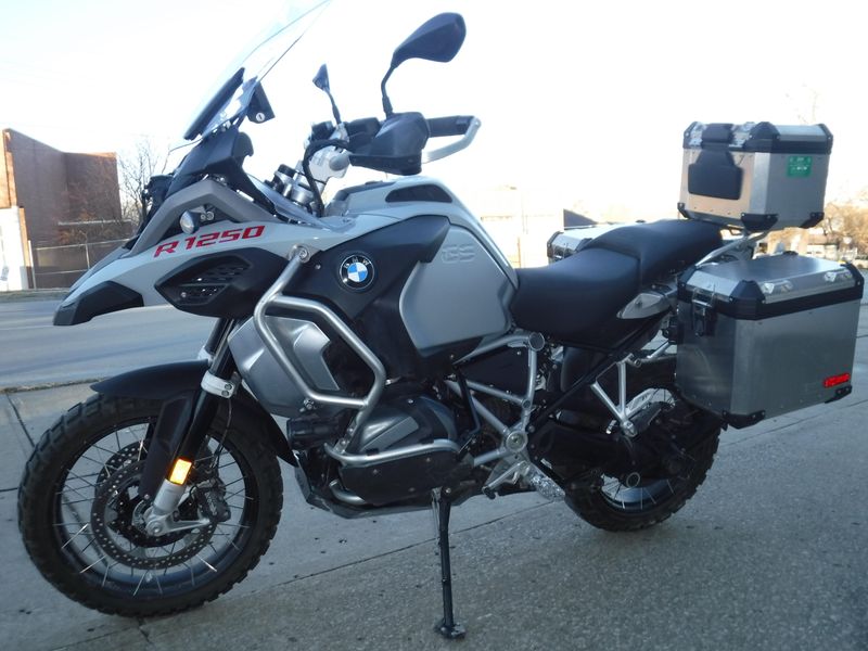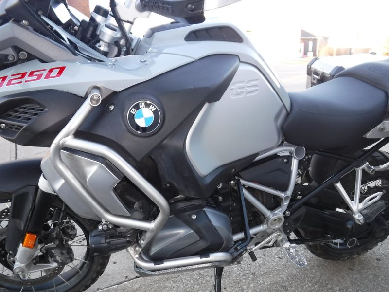 Check out this R1250 GSA with BMW top and side cases, a Blackdog skid plate, Blackdog engine guard supports, Blackdog engine guard protector, a radiator guard, Blackdog footpegs, Bark Buster hand protectors and a headlight protector.